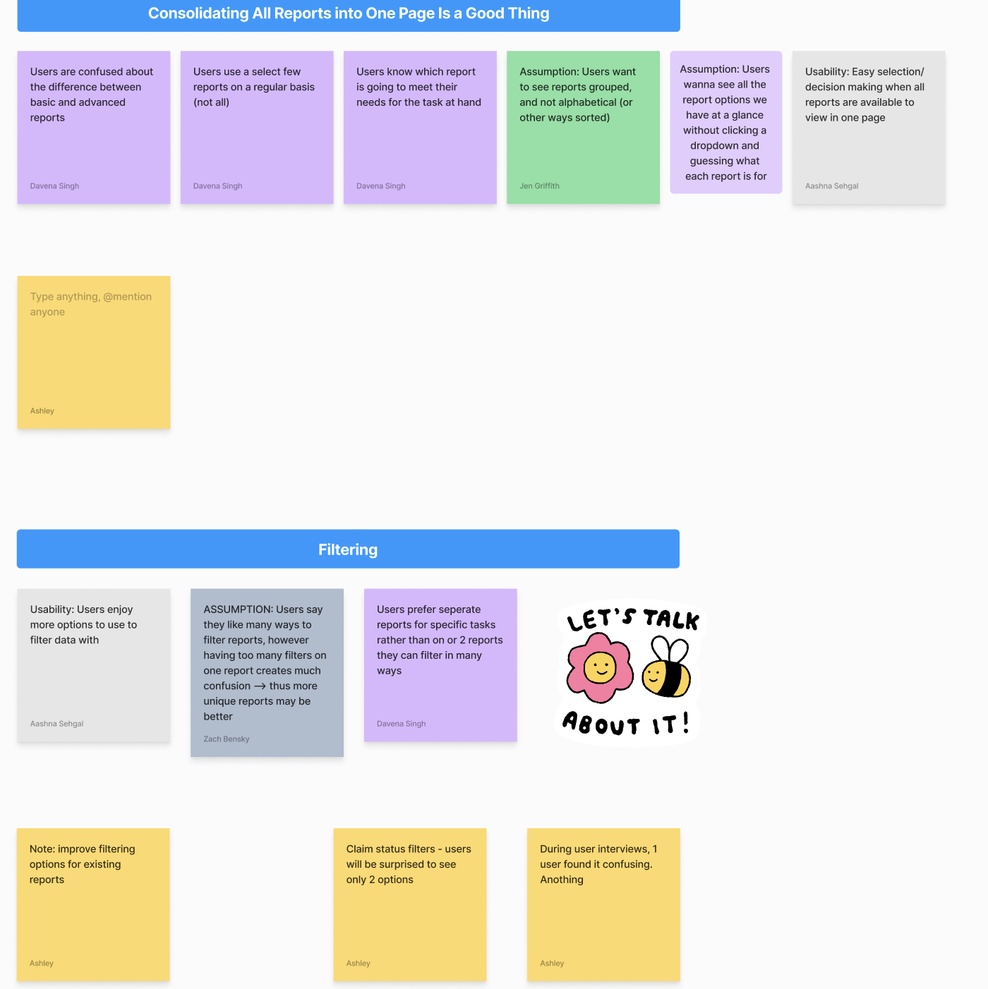Led by the Product Manager on this project, we began to identify more granular issues that users and our team had previously highlighted with the entire reporting experience.