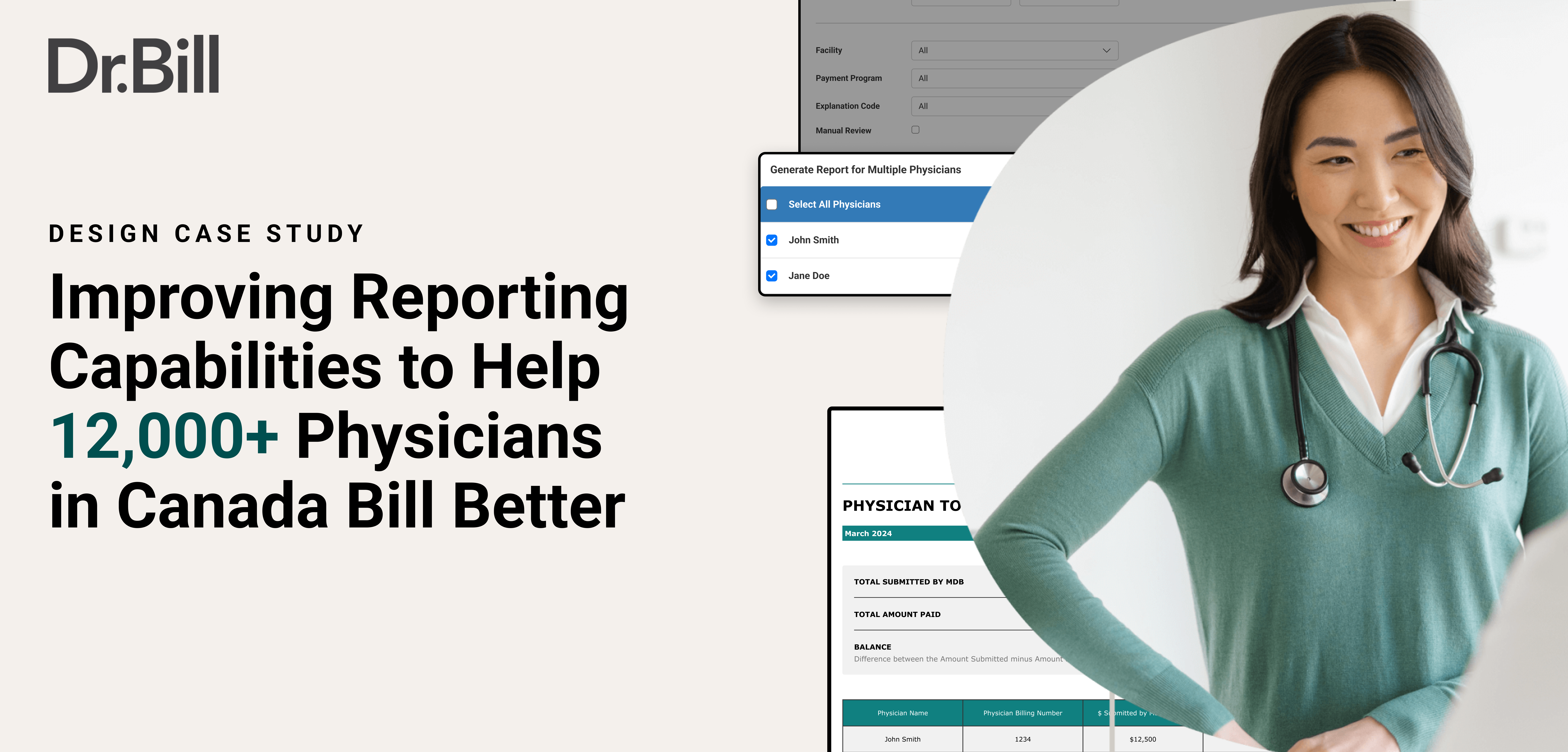In Canada, physicians bill the government to get paid for their services. Enterprise clients (hospital departments & billing groups) rely heavily on reporting to understand what was billed, what got paid, and where discrepancies exist. In short, better reporting capabilities = more time saved for physicians. At Dr. Bill, I helped redesign the reporting experience, and led the end-to-end redesign of the Claim Summary Payment report - one of the most frequently used enterprise reports after uncovering critical inefficiencies that caused hospital leads and billing agents to spend unnecessary hours reconciling payments.